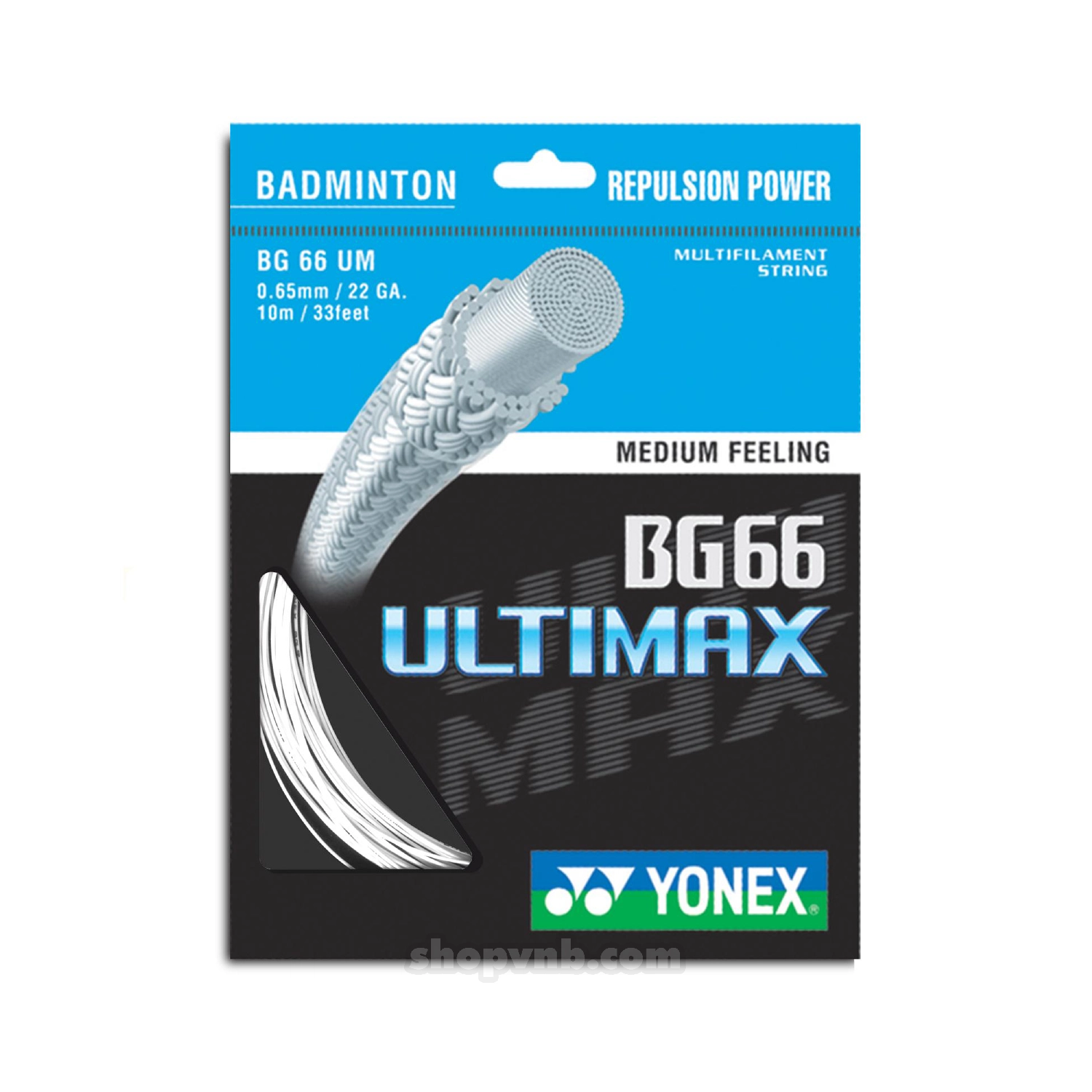 - Cước căng vợt Yonex BG 66 Ultimax được thiết kế với lõi nylon cường độ cao, mang lại độ bền cao hơn 30% so với nylon thông thường. Lớp ngoài được làm từ sợi polymer cao cấp, giúp tạo ra cảm giác chính xác và lực nảy vượt trội khi chơi cầu. Đây thực sự là một sản phẩm cao cấp với hiệu suất toàn diện đáng kinh ngạc.